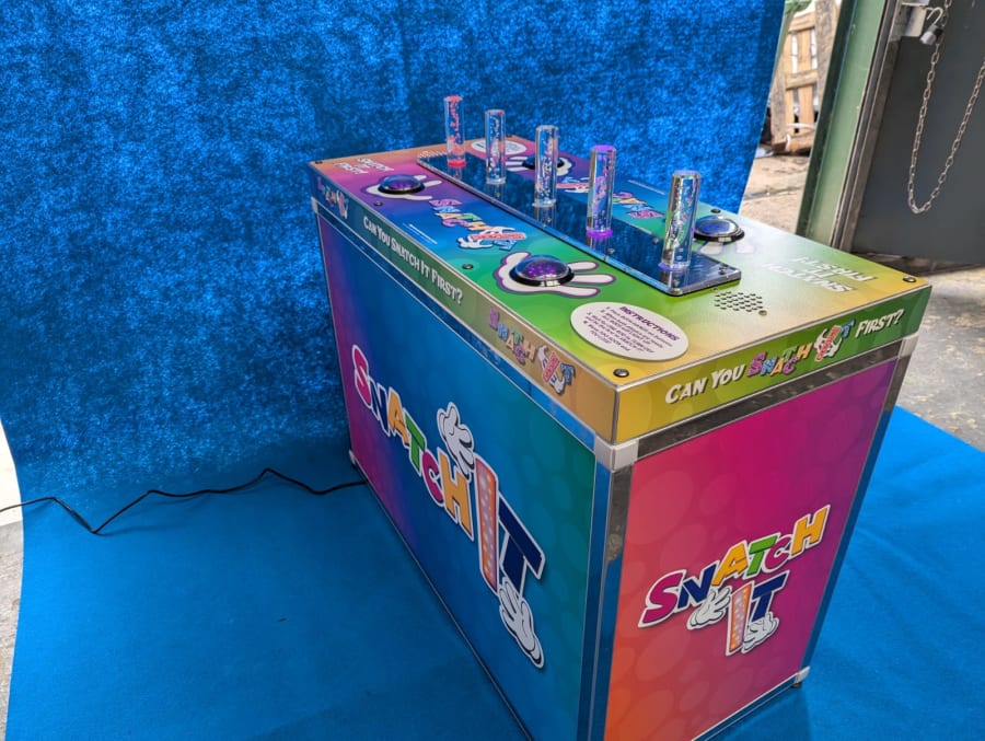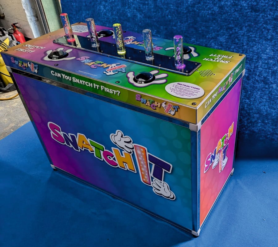 We can offer branding options on SNATCH IT, with not only the sides, but the top can be custom branded to meet your marketing needs. Our in-house printing team very much enjoy working on unique and bespoke branding to help you stand out and provide that immersive experience for players.
