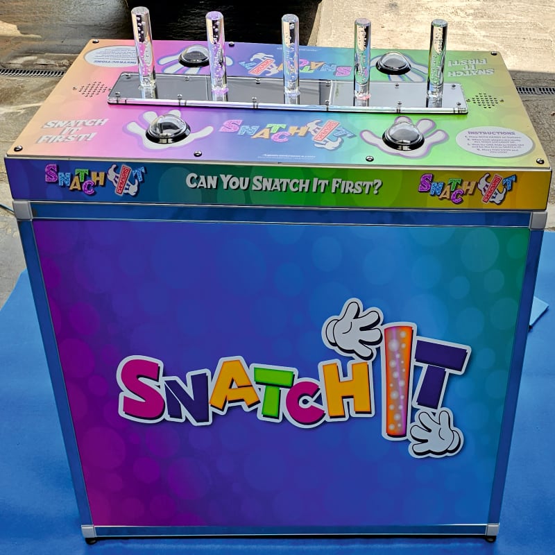 Don't miss out on the chance to bring the thrill of ‘Snatch It’ to your next event. Available for game hire in the UK, including Exeter, Cardiff, Bristol, Birmingham, NEC, ICC Arena, Reading, Oxford, Swindon, London, Coventry, Nottingham, Leicester, Telford, Leeds, Milton Keynes, Sheffield, and more!