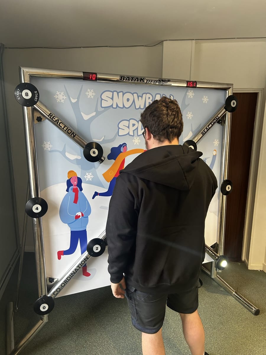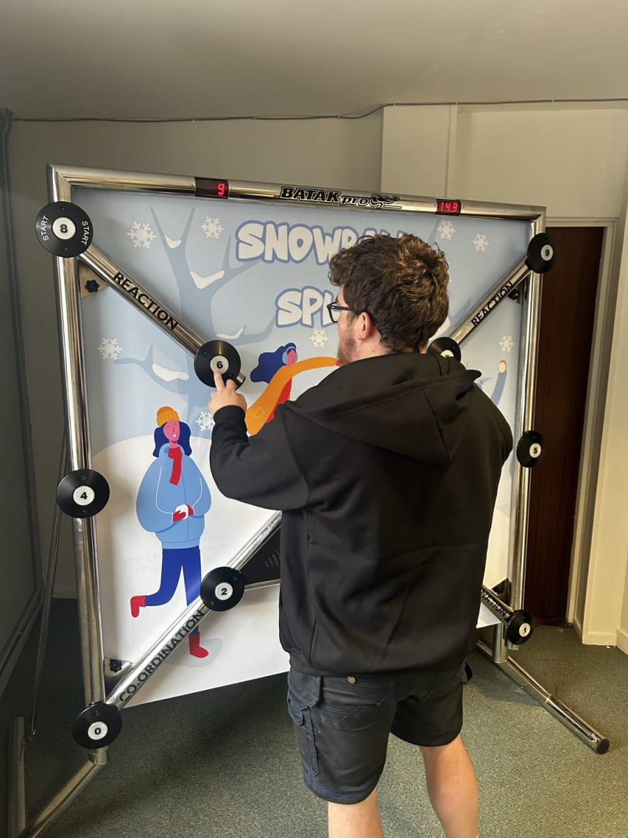 Batak Pro is a full-sized, fast-paced reaction game that lights up the room — literally! With its glowing illuminated targets, players race against the clock to hit as many as they can before time runs out. It’s a test of reflexes, coordination, and Christmas cheer — guaranteed to get hearts racing and faces smiling.