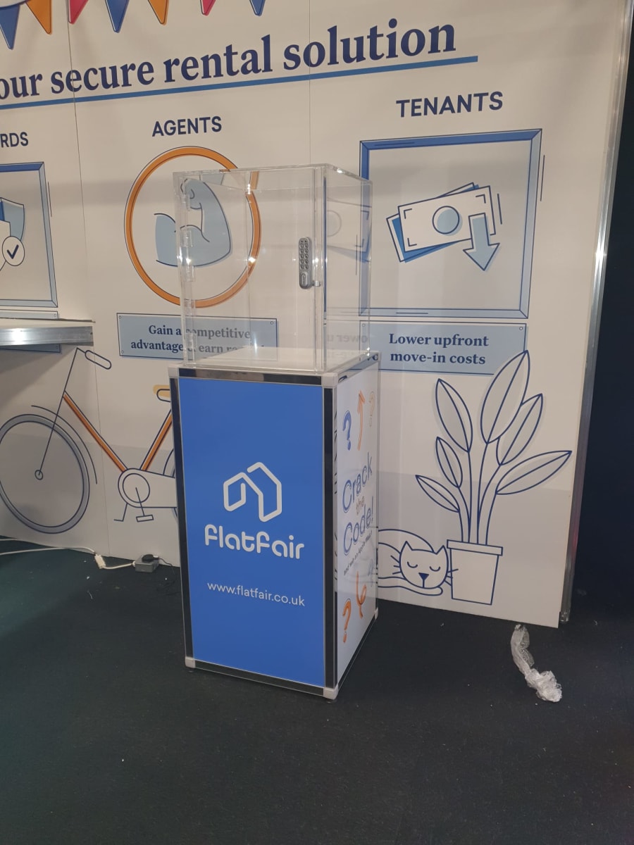 All 4 panels that the safe cracker sits upon are made from acrylic, enabling the stand to be branded with your company name and logo. We can brand the Safe Cracker game in-house depending on your requirements using your company colours from £95+vat